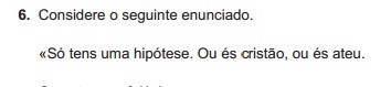 Meus caros, na minha opinião - e de todos os professores de Língua Portuguesa e de Filosofia da minha escola - o enunciado encontra-se mal formulado. Porquê? Porque não temos apenas UMA hipótese mas sim, DUAS.